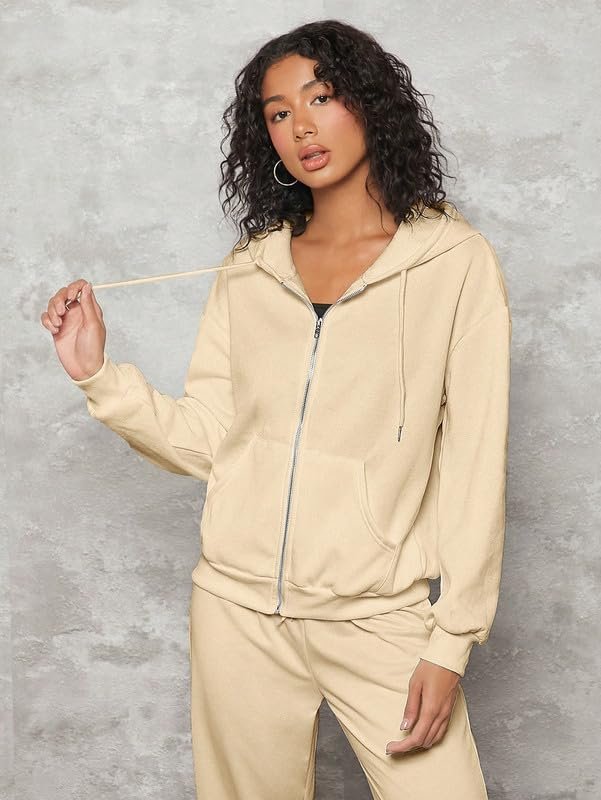 Women’s Polycotton Fleece Plain Hooded Neck Full Zipper Winter
